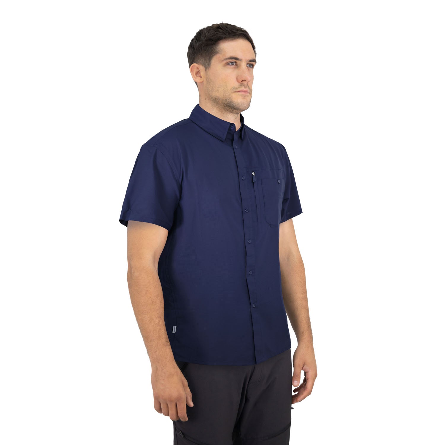 Camisa outdoor manga corta diseñada para moverse entre cerros y ciudad. Su tejido 100% poliéster es ligero y resistente, ideal para trekking, excursiones y viajes en climas templados a cálidos. Incorpora acabado DWR Eco Bionic PFC free que repele llovizna y salpicaduras sin fluorados. De secado rápido y fácil cuidado, funciona tanto para usuarios outdoor como para empresas de turismo que buscan una prenda técnica, durable y sustentable.