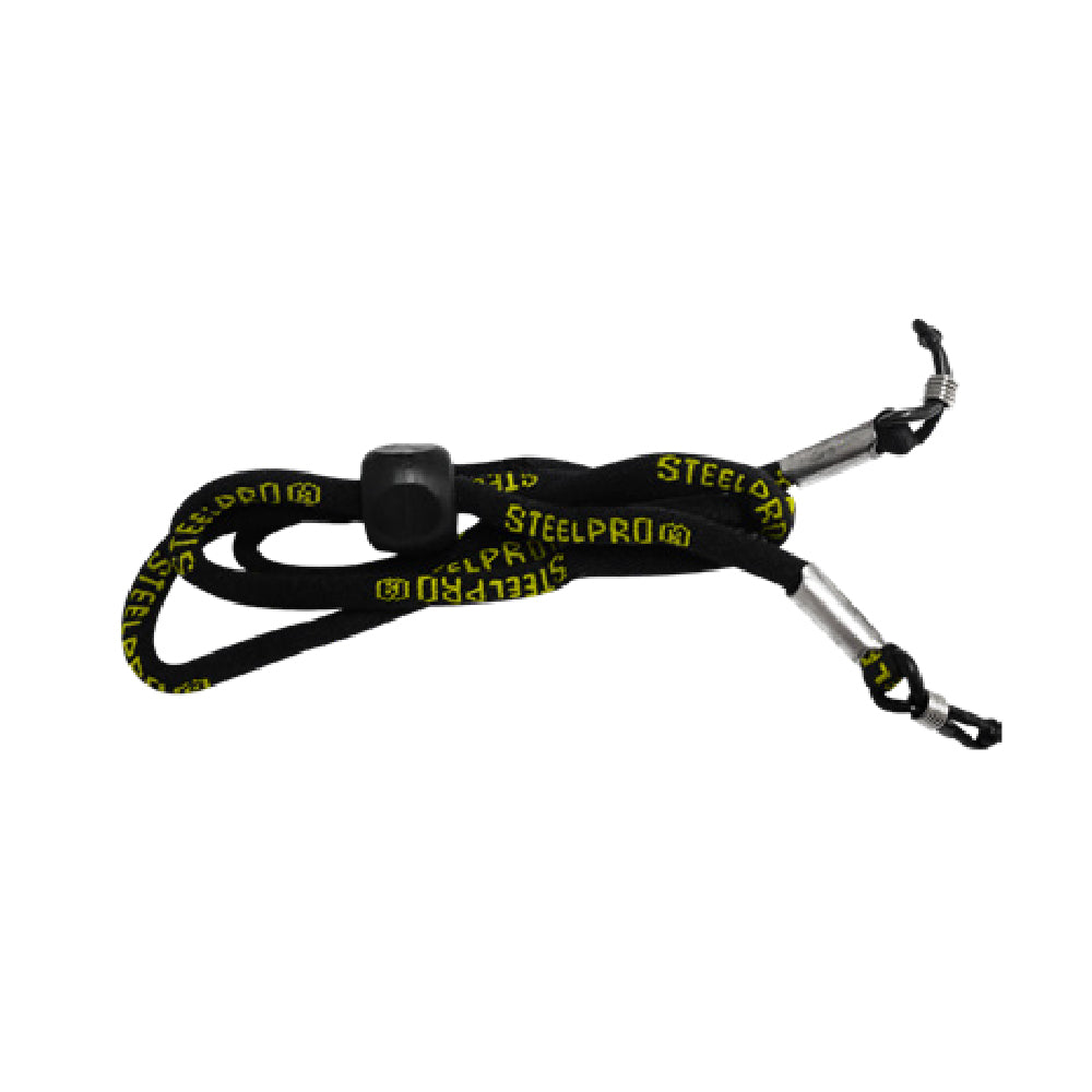 Cordón Steelpro negro , mide 60 cm hecho en polipropileno trenzado de alta tenacidad que ayuda al posicionamiento perfecto del lente al cuello, además posee un dispositivo de ajuste que permite controlar el largo de la pieza, posee un encastre adaptativo para una gran variedad de patillas de anteojos