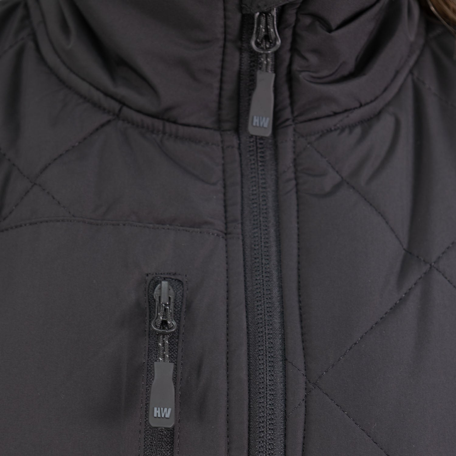 La parka presenta un diseño de aislamiento en forma de diamante, que distribuye de manera más efectiva el calor en toda la superficie de la prenda, asegurando un aislamiento térmico óptimo.